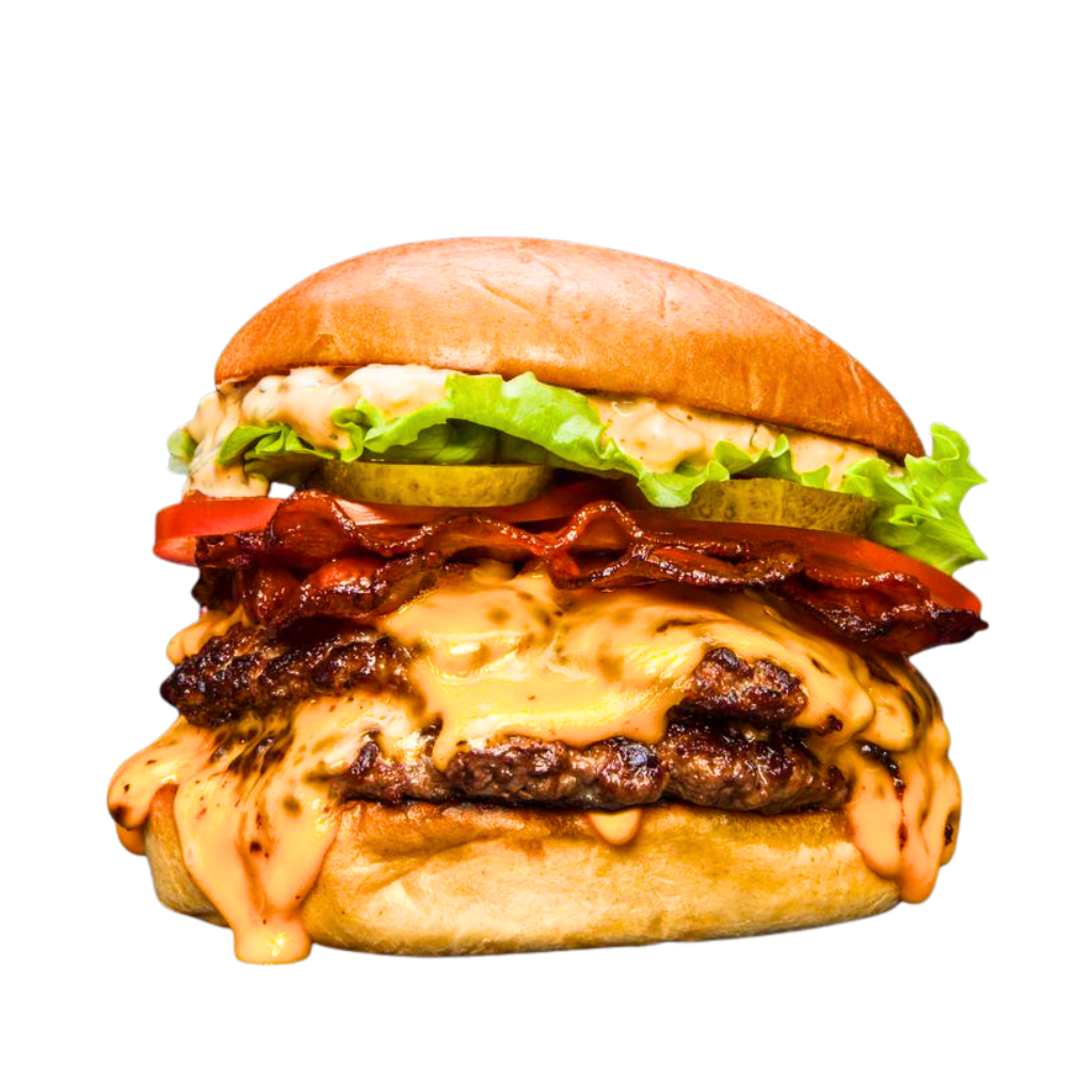 Boeuf hachée, Bacon, Salade, Tomate, Oignons, Cornichon, Cheddar, Sauce biggy