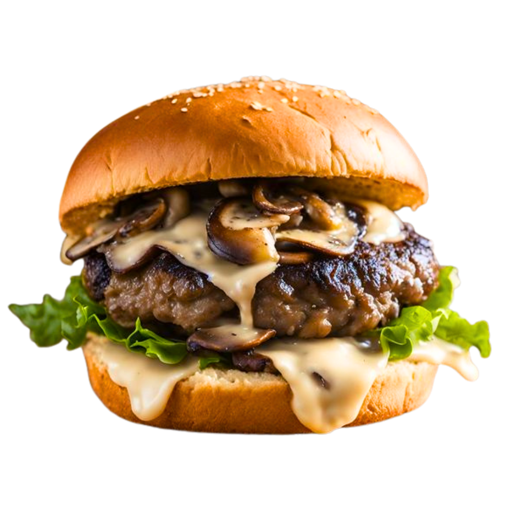 Boeuf hachée, Raclette, Champignons, Oignons confita, Sauce roquefort, Sauce truffe
