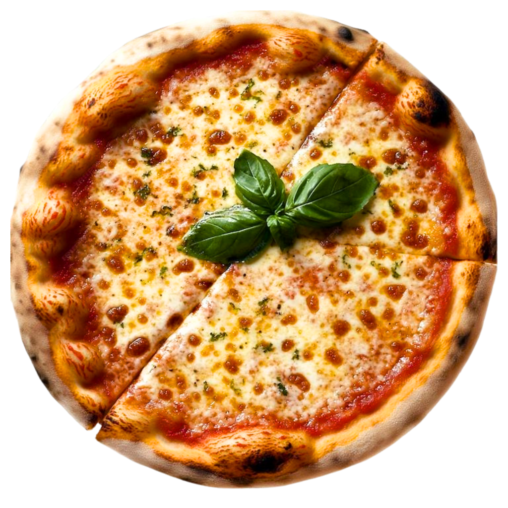 Base tomate, Mozzrella, Origan, Basilic frais, Huile d’olive